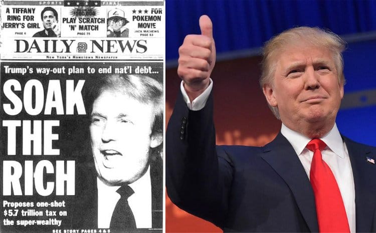 In 1999, Trump proposed a one-time tax of 14.25% on individuals with a net worth $10 million or more and claimed that it would raise $5.7 trillion, which can wipe out the national debt.