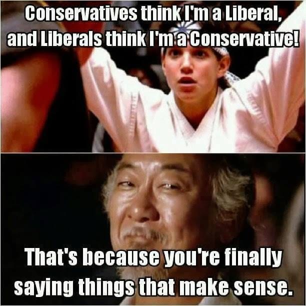 When you have discussions with your friends or people online about politics, you get accused by hyper-partisan conservatives of being a radical left winger, and later that same week a hyper-partisan liberal accuses you of being alt-right. You laugh to yourself because you know you're neither one of those things, but somewhere in the middle, or that you see the nuances well enough to align differently on an issue-by-issue basis without having to march in lockstep with an accepted partisan creed.