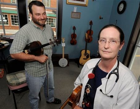 Susan is a Virginia physician and a big fan of bluegrass. Mike is a Virginia music school director who bartered to trade her a fiddle and fiddle-playing lessons in exchange for medical services.