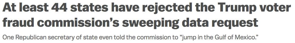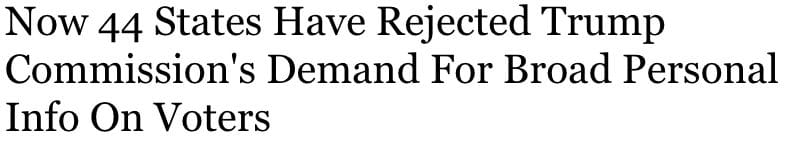 The biggest headline this week on President Donald Trump's election integrity commission is that 44 states plus DC have partly or fully rejected the commission's request for a broad array of personal voter data if it is publicly available per state law.