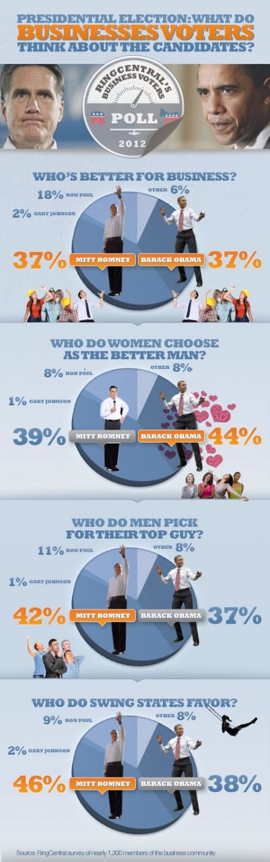 The following infographic features results from a poll of 1300 members of the business community on their preferences in the 2012 presidential election: