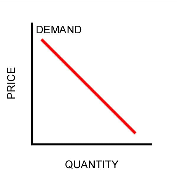 Shown above is the Law of Demand on a graph of the relationship between the price and the quantity of any good or service.