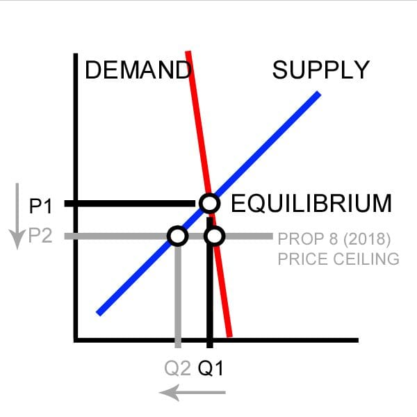 But economists understand why what they are claiming is a very plausible– maybe even likely– outcome of imposing price ceilings on this market, as Prop 8 would do if passed.