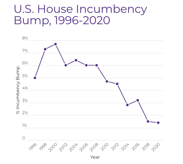 According to the report, this advantage is shrinking, which means all the things that used to give incumbents a leg up on the opposition (e.g. money, name recognition, experience, etc) does not mean as much as the partisan-leanings of local voters.