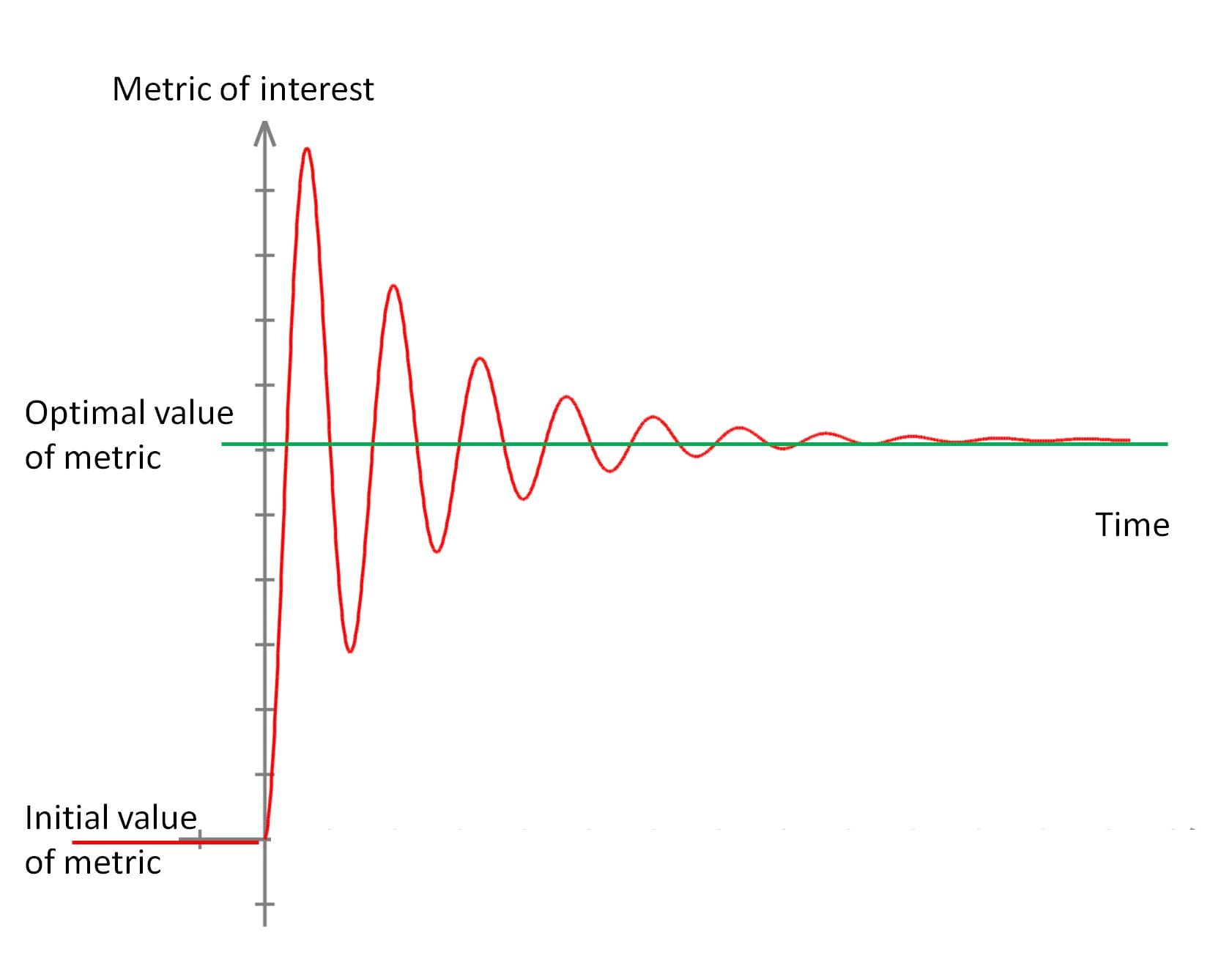 In both graphs, a system is initially in an undesired state (initial value) and we want to move it to the desired state. The vertical axis represents the metric that matters. It could be the output voltage of the aforementioned circuit, but in a country, it could be “liberty,” “prosperity,” or “justice,” however defined. Sure, it’s unusual to put such a big concept on an axis - but this is a visual analogy, and if we are going to use any such concept to say one state of affairs is better than another, then it is completely consistent to represent it in this way.