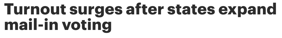 Many states have taken great strides to increase access to absentee and mail-in ballots in the midst of the COVID-19 pandemic. The impact that this has had is record breaking turnout in several areas:
