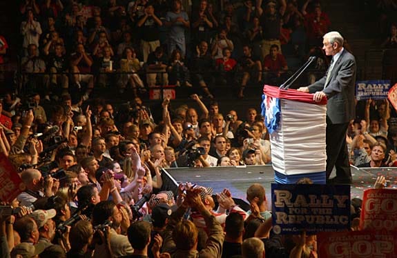 Ron Paul speaks at his 2008 Rally for the Republic in Minneapolis (Credit: Declan McCullagh / CNET News)