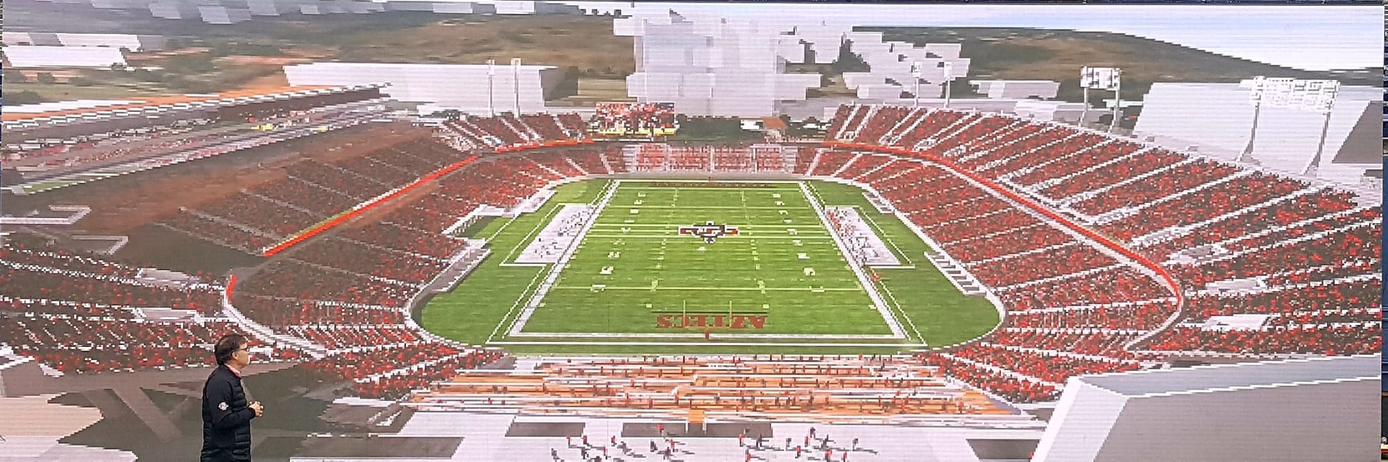 San Diego State University officials unveiled new plans to build a sports stadium at the site of the former home of the San Diego Chargers.