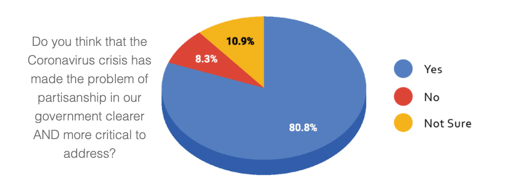 What united the independents surveyed, though, is a shared concern that partisanship is only getting worse, and it is having a toxic effect on government. For instance, 81% of voters surveyed said they believed the COVID crisis only made the problem of partisanship more critical to address.