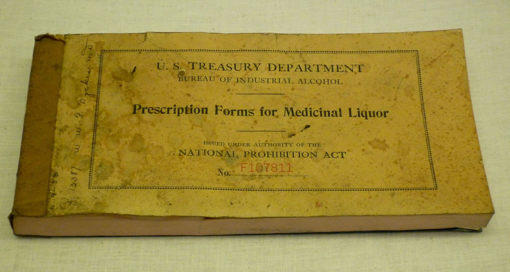 Official prescription tablet for medicinal alcohol, 1933. Credit: The Rose Melnick Medical Museum