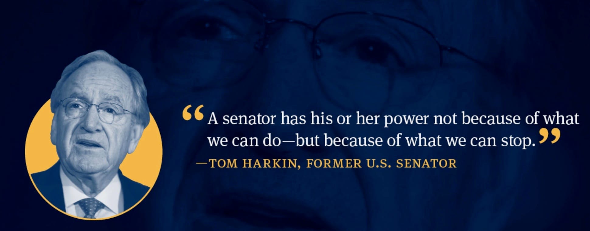 Let’s get right to it. The filibuster and cloture rules in the US Senate, which require 60 votes to even get to a vote on legislation, are NOT in the Constitution. Moreover, their creation were an accident of history. As a result, one Senator can freeze all progress in a country of 330 million people.