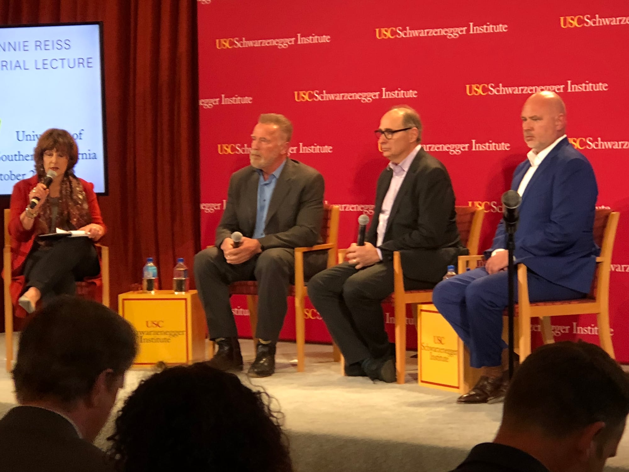 The lecture — Bonnie had insisted that she did not want a memorial — was designed to be a public rendering of the state of the political divide in America, just before the midterms. Arnold Schwarzenegger — who inspired, named and funded an institute at USC where the event took place — gave a moving and oftentimes hilarious tribute to her, her years in his administration while he was governor, and their personal friendship.